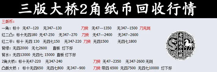 不错看到,正常大桥标十的无47的报价在220元,单张22元,而凸版大桥2角无47的报价在800元,一张就80元。