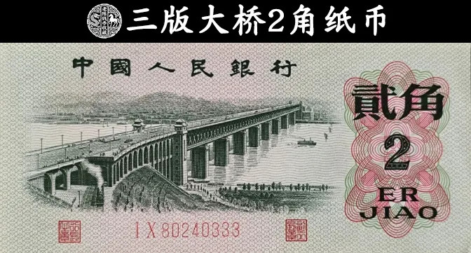 这种主图是武汉长江大桥的2角纸币,即是三版刊行的2角纸币。现时这种2角纸币,被市集区别出来整个有2种,正常2角和凸版2角纸币。